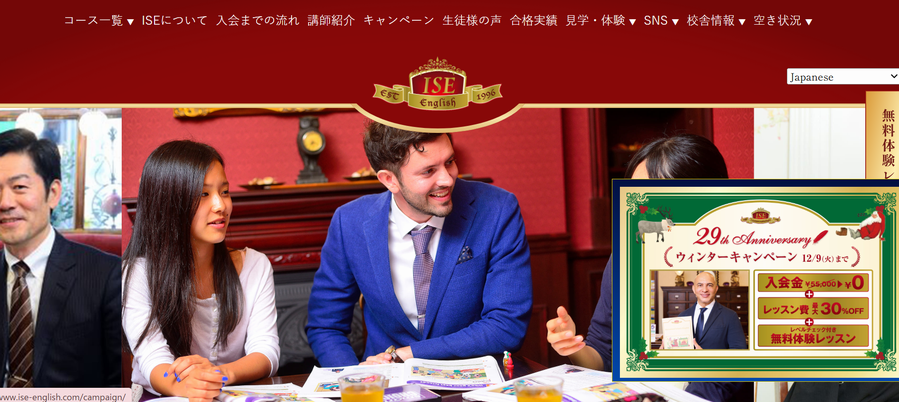 | ISE英会話スクール | レベルチェック付き個別カウンセリング | 講師との相性、教材の質、学習プラン |
